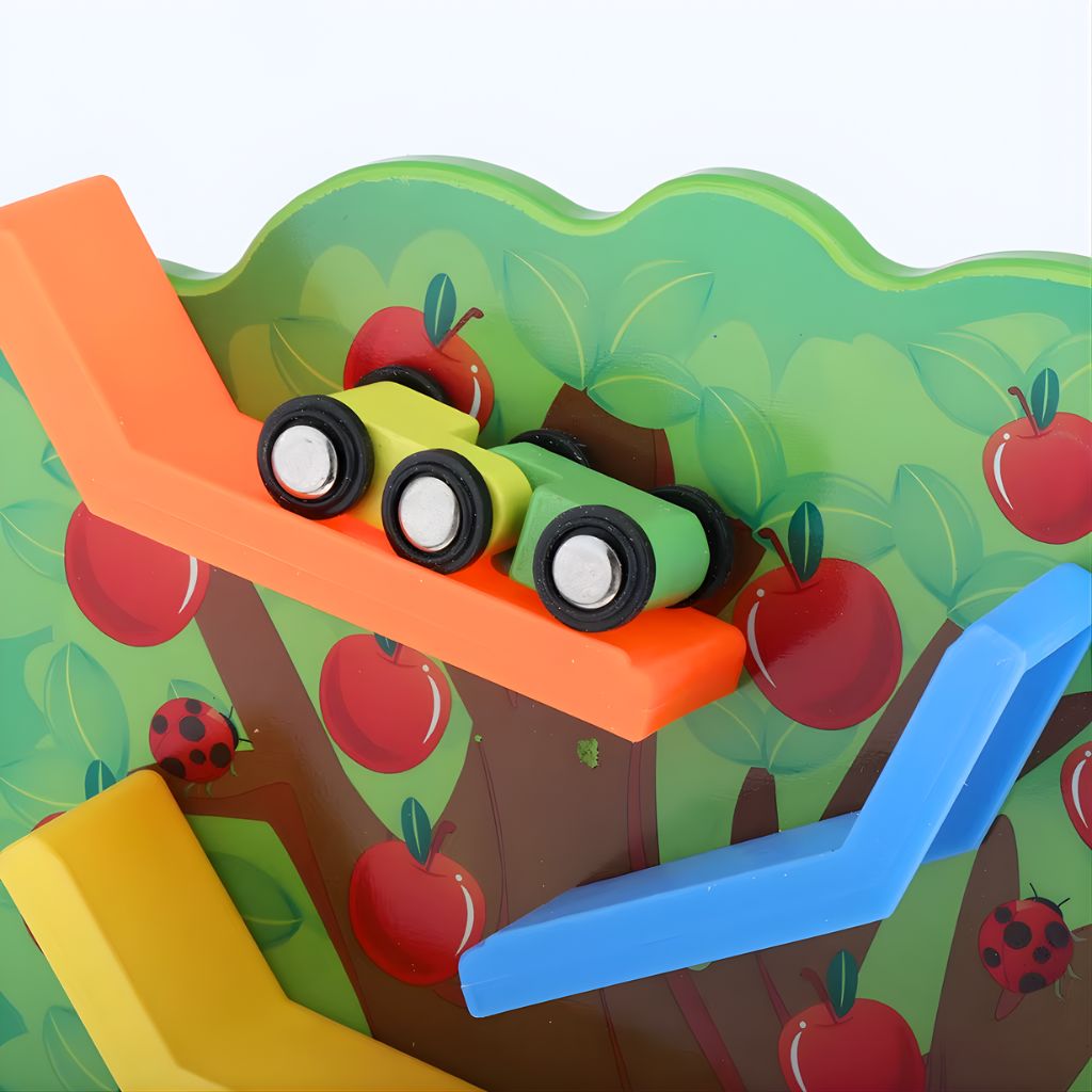 Ideal para niños de 2 a 5 años, el Árbol Mágico de Carreras Jirafa se utiliza colocando los autos en la parte superior del árbol, observando cómo descienden por las rampas en un emocionante recorrido. Perfecto para sesiones de juego individual o en grupo, estimulando la cooperación y el aprendizaje compartido.
