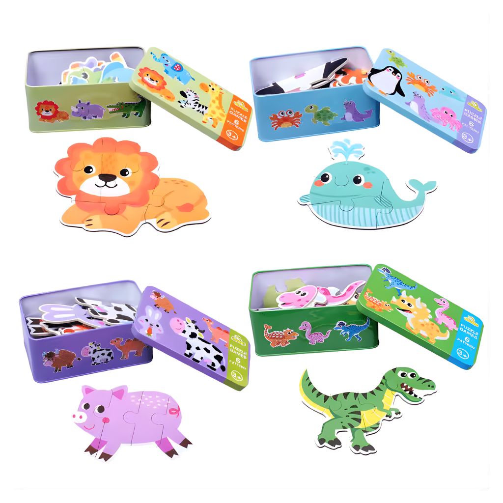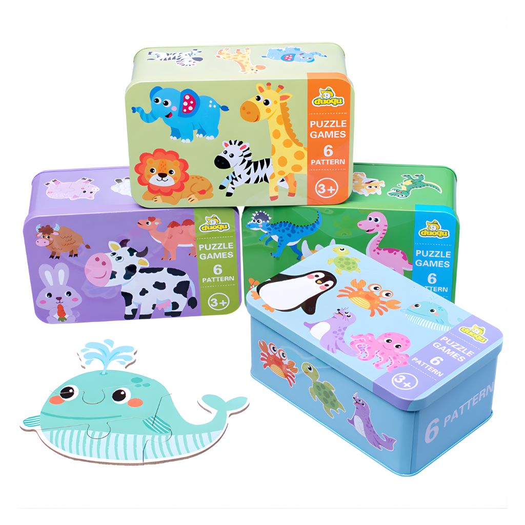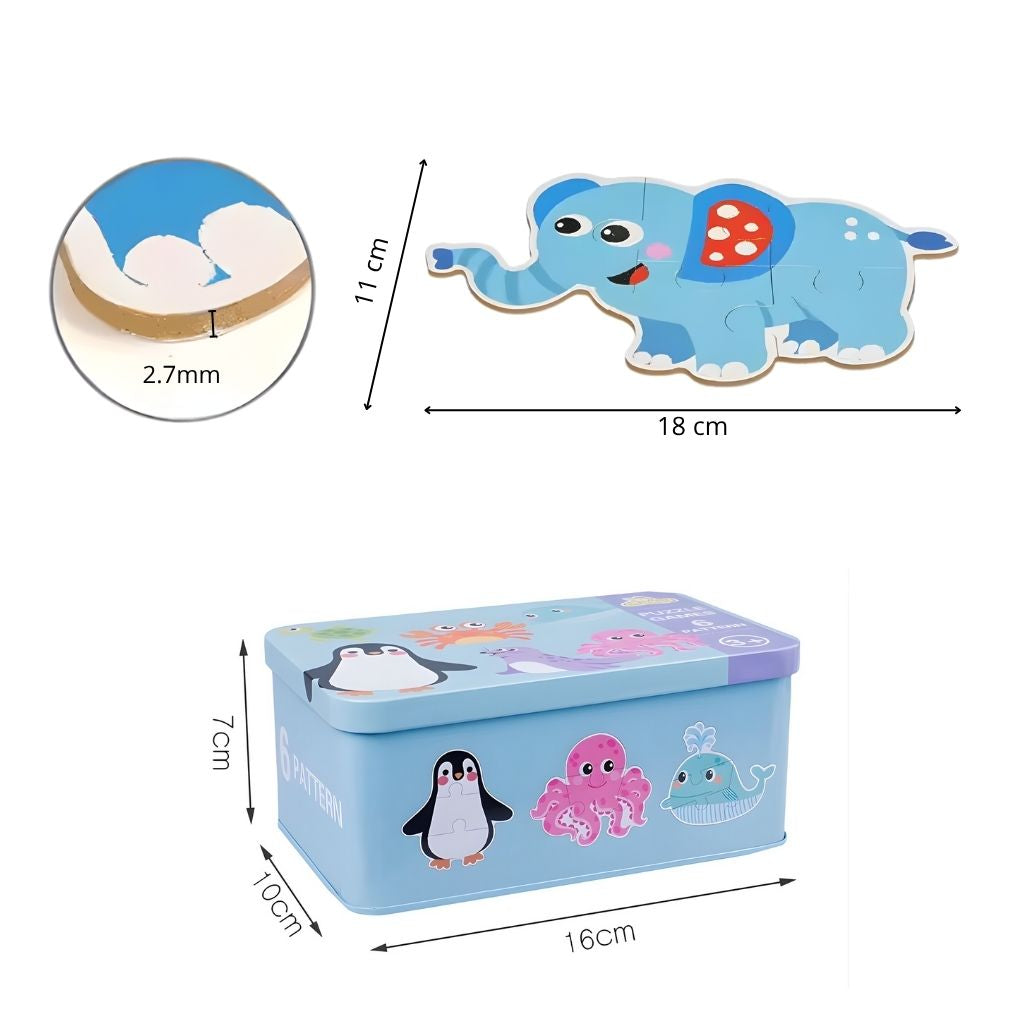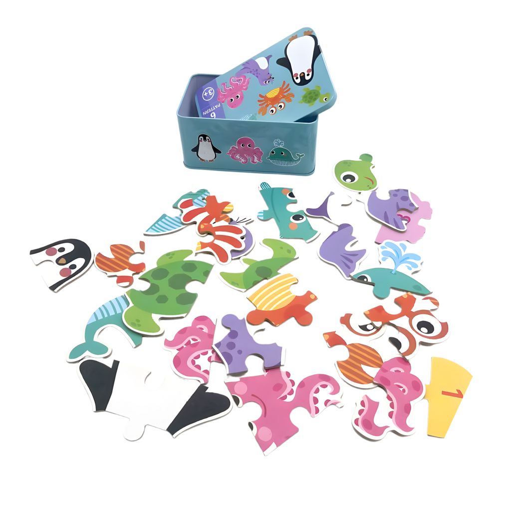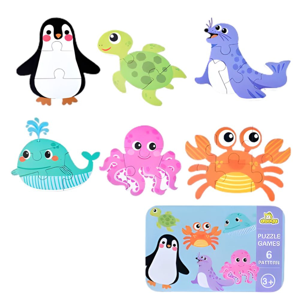 Descubre la diversión educativa con el rompecabezas animales del mar en estuche metálico, perfectos para niños a partir de 2 años. Cada estuche incluye 6 rompecabezas con diferentes patrones, ofreciendo una variedad de desafíos que ayudarán a desarrollar la coordinación mano-ojo y las habilidades cognitivas de los pequeños.Estos rompecabezas están diseñados para capturar la imaginación de los niños mientras fomentan la concentración y la resolución de problemas.
