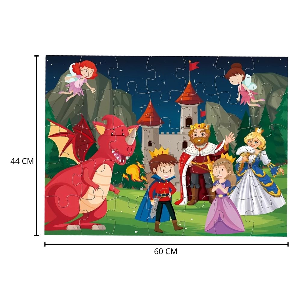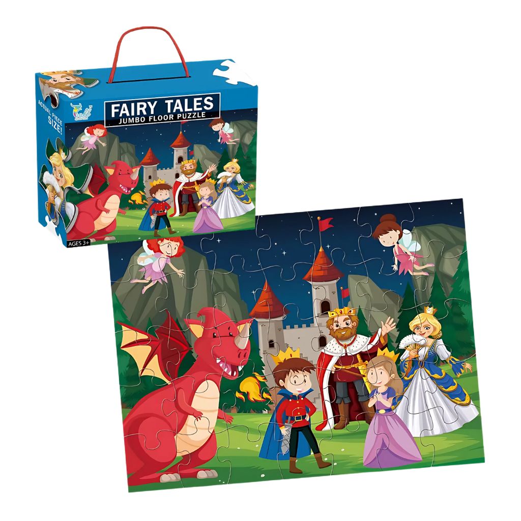 Arma una escena gigante en el piso con este rompecabezas de 35 piezas jumbo diseño Cuento de Hadas. Las piezas grandes y resistentes invitan al juego libre, fortalecen la concentración y la coordinación mano-ojo, mientras los peques descubren detalles y conversan sobre la ilustración. Ideal para armar en familia desde los 3 años. Incluye caja con asa para guardar y transportar.