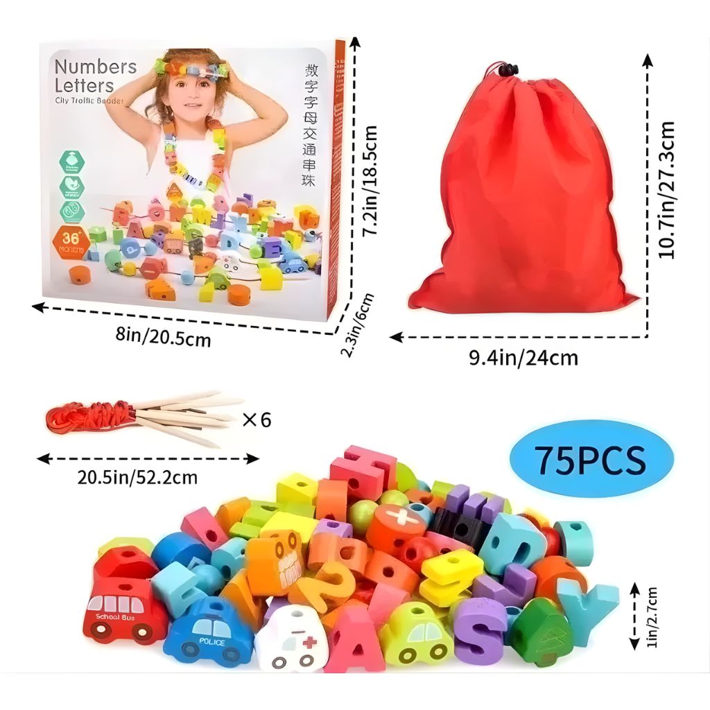 Descubre el mundo del aprendizaje a través del juego con nuestro Set Abecedario Enhebrable. Diseñado para capturar la imaginación de los más pequeños, este conjunto colorido y seguro es perfecto para explorar letras, números y vehículos mientras se divierten.