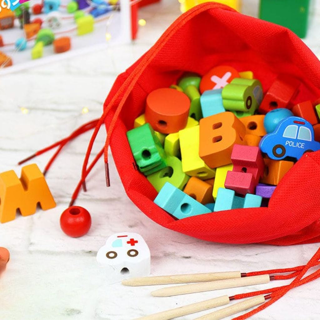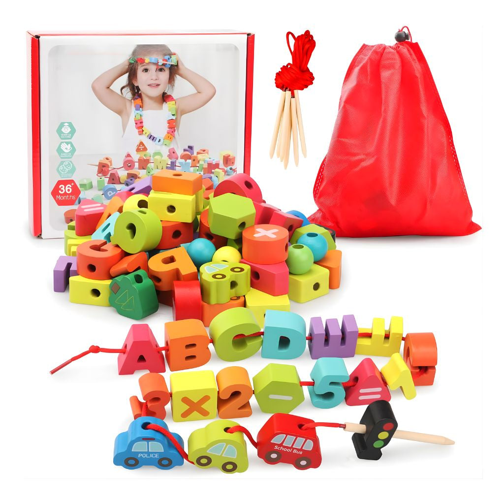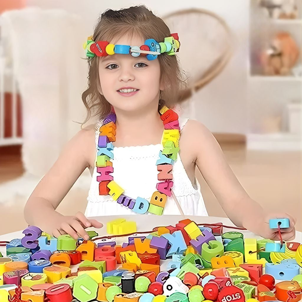 Ideal para niños a partir de 3 años, este set permite enhebrar piezas con facilidad, promoviendo un aprendizaje activo y entretenido. Perfecto para usar en casa o en el jardín infantil.
