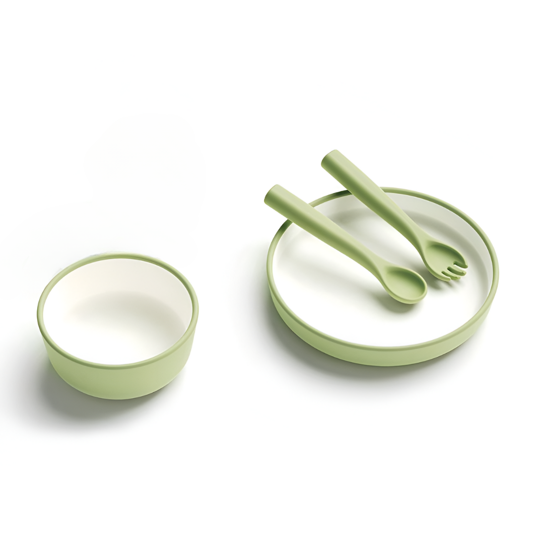 Descripción Este set de alimentación de silicona es perfecto para acompañar a los pequeños en sus primeros pasos hacia la autonomía a la hora de comer. Incluye un plato, un bol y cubiertos ergonómicos diseñados para facilitar el agarre de los niños. Fabricado en silicona de grado alimenticio, es seguro, resistente y fácil de limpiar, lo que lo convierte en una excelente opción para el día a día de la familia.