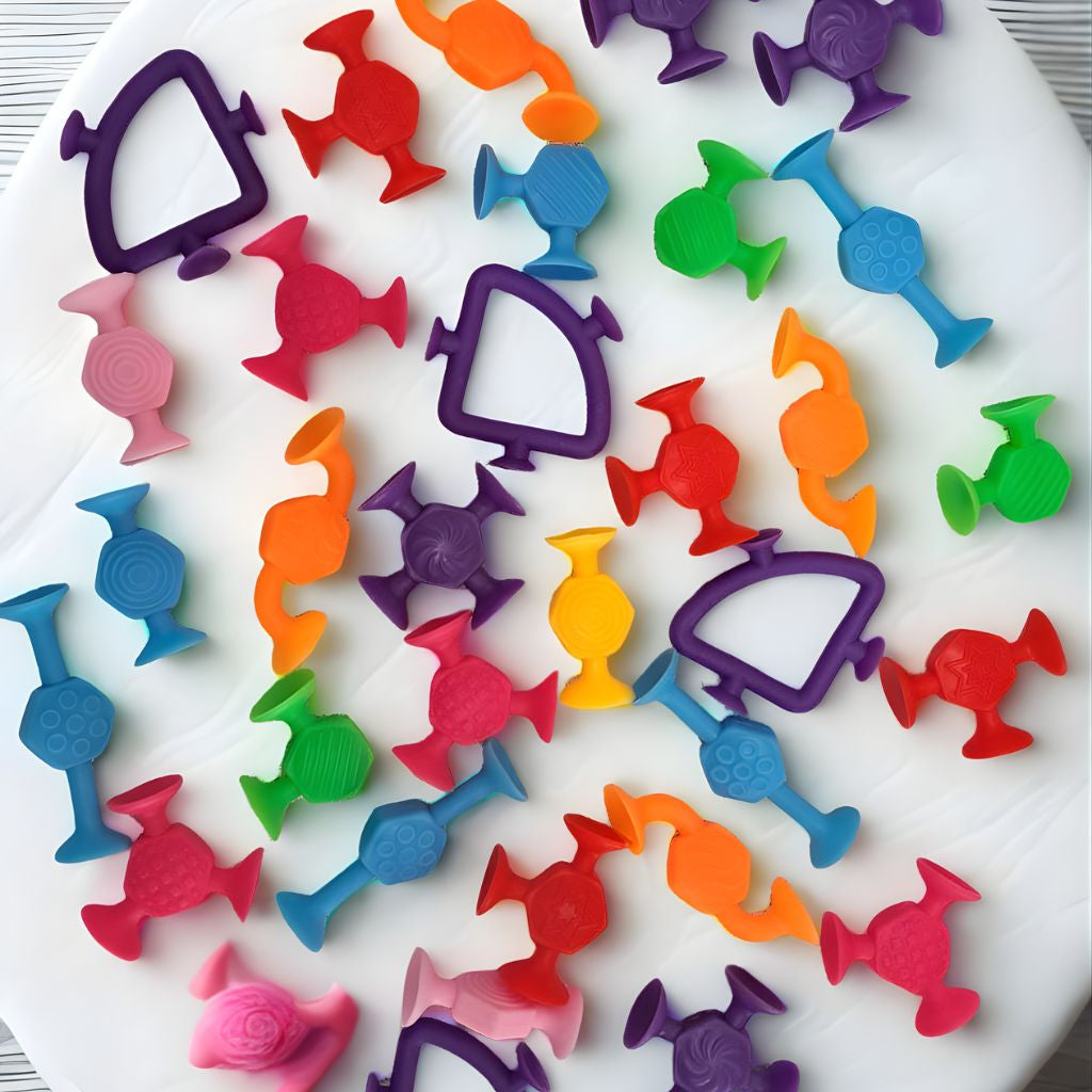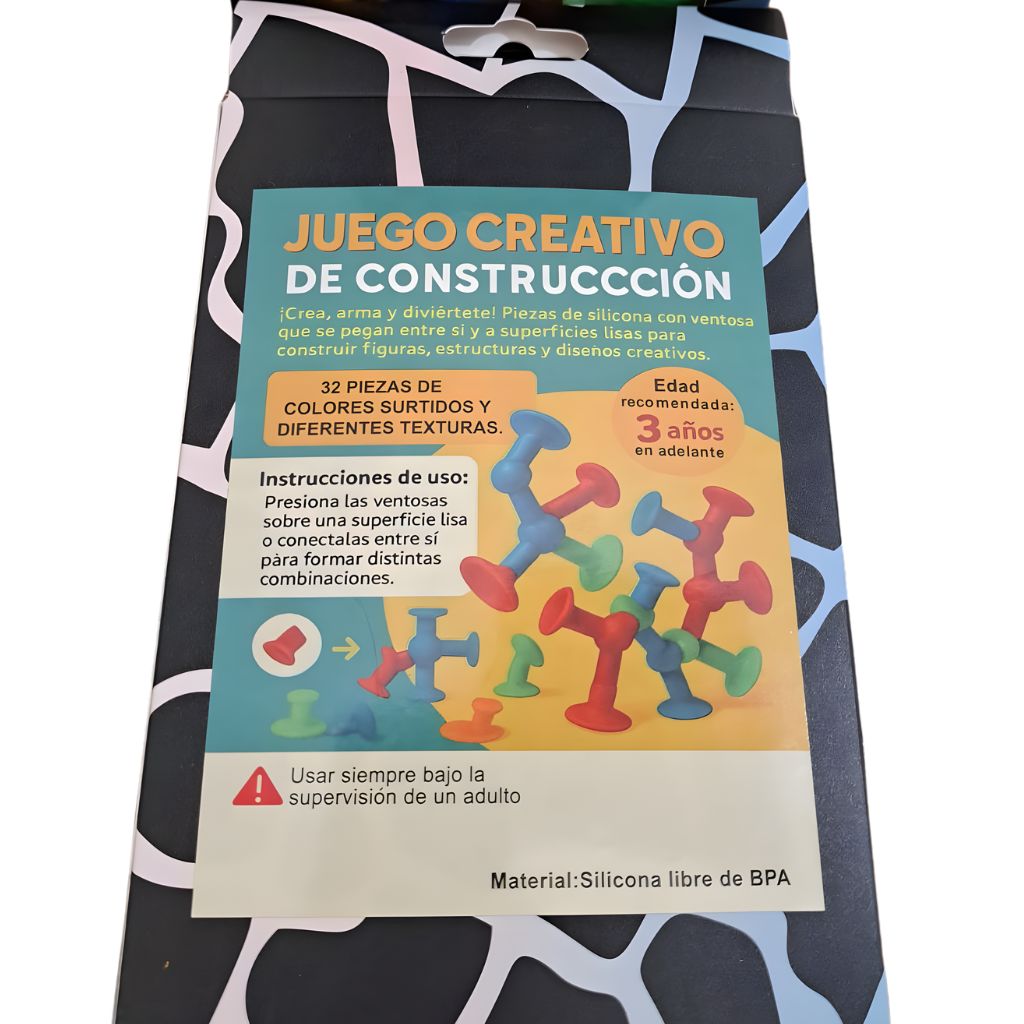 Un juego sensorial que engancha desde el primer “pop”. Este set de ventosas de silicona se adhieren entre sí y a superficies lisas para crear figuras, cadenas y estructuras libres. Ideal para entretener en casa o de viaje, fomenta el juego independiente y la imaginación con total seguridad. Sus texturas suaves estimulan los sentidos mientras los colores vivos invitan a explorar y construir sin límites.