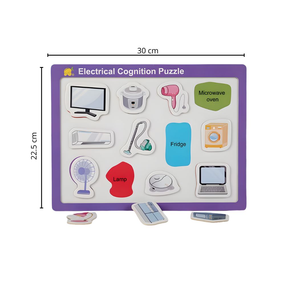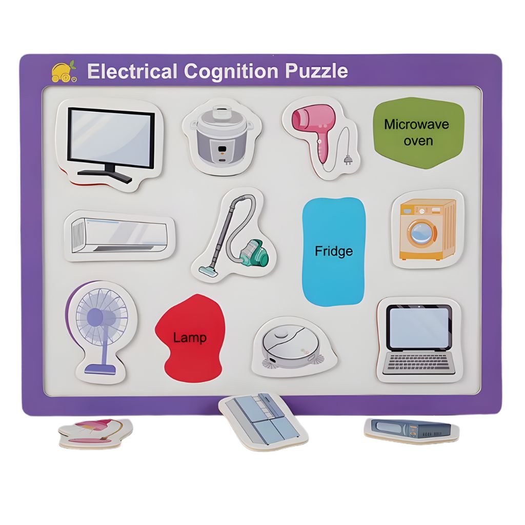 El Tablero de Encaje Magnético Artículos Electrónicos acerca a los peques al mundo de los electrodomésticos de manera segura y lúdica. Cada pieza imantada encaja en su silueta, incentivando la observación y el reconocimiento. Las ilustraciones coloridas y palabras en inglés motivan a nombrar y contar historias, ideal para juego libre en casa o sala.