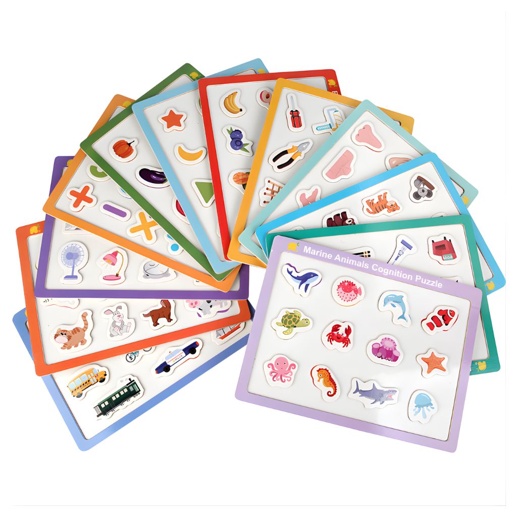Coloca el tablero sobre una mesa o el suelo y anima a tu hijo/a a buscar la silueta correcta para cada vehículo. Úsalo para nombrar transportes, contar historias o crear clasificaciones (tierra, mar, aire). Perfecto para momentos de juego libre o actividades dirigidas en casa y como regalo educativo.