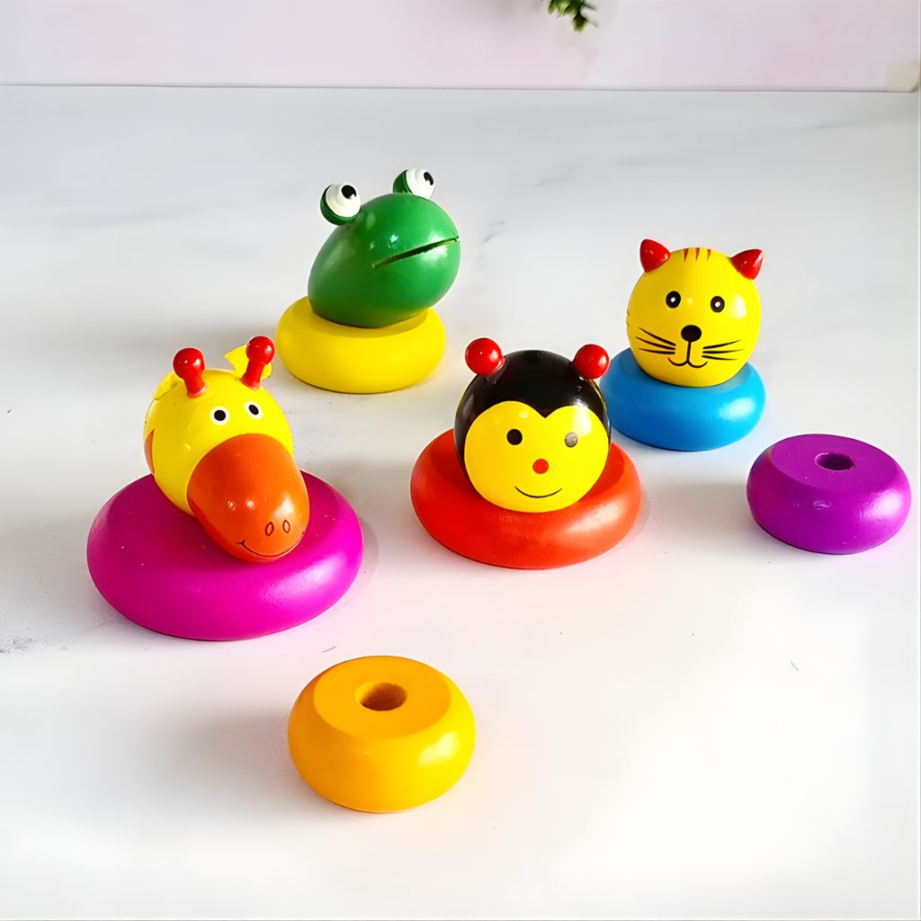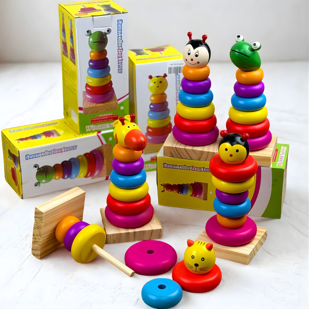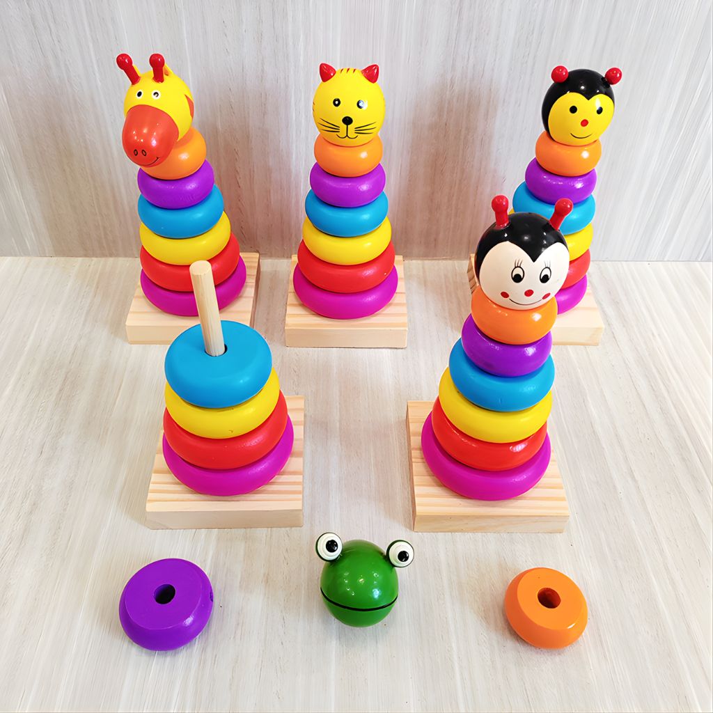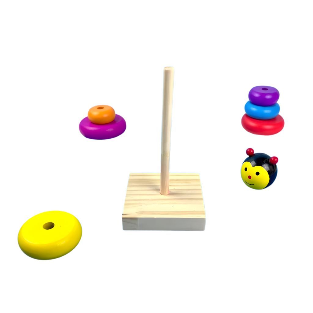 La Torre Apilable es fácil de usar: los niños pueden apilar los aros de colores en su base de madera, creando diferentes combinaciones. Perfecta para niños de 1 a 4 años, se convierte en una herramienta educativa divertida tanto en casa como en el jardín infantil.